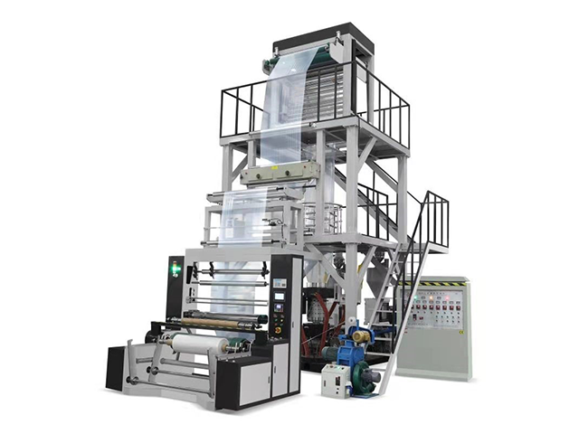 The three-layer co-extrusion blow-thinning production line adopts a new type of high-efficiency and low-energy-consumption extrusion unit, IBC film bubble internal cooling system, ±360° horizontal upward traction and rotation system, photoelectric automatic deviation correction device, automatic winding and film tension control, computer screen automatic Advanced technologies such as control systems. Compared with similar equipment, it has the advantages of higher output, good product plasticization, low energy consumption, and simple operation. It completely solves the problems of film ruffles and rewinding size, and brings product quality to a new level. The produced film has high transparency, puncture resistance, high toughness, good low-temperature heat-cutting properties, good composite fastness and anti-curling properties. This kind of film can be widely used in light and heavy packaging due to its good barrier properties, freshness, moisture resistance, frost resistance, oxygen barrier and oil resistance. Such as various fresh fruits, meat products, pickles, fresh milk, liquid beverages, medical supplies, etc.