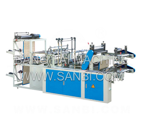 This machine a specially-designed point-cut rolling dual-purpose for vest & flat bags,is controlled by a computer, the step(servo) setting length system reduces the sealing-cutting dimensions errors, and the installation of photoelectric eyes track help make the position of figure of printing bags accurately, the computer numerical control can be selected to adjust the length of bag the machine will automatically stop and sound a warning if there is something wrong with the printing bags.