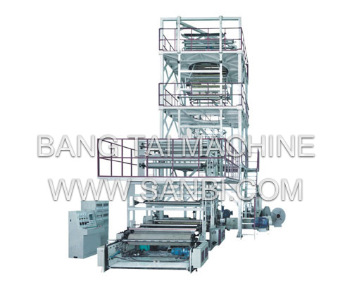 This machine set is to satisfy the customer’s requirements of high quality, high out put film blowing equipment. It adopts the extruder with force feeding function, precision type ceramic heater, precision type double vents air ring, horizontal type rotary traction system, IBC inner cooling system, fully automatic surface friction type double cut double winders, computer concentrate control system, advanced technique and equipments. Compare with kindred equipment, it has the advantages such as more compact structure, higher output, better produce quality, less energy consume, easier operation. It can be widely used into various kind of high transparence packing film manufacture, and create the considerable economic benefit for you.