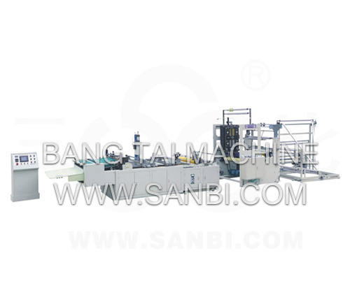 2.Flow process of production is from rolled material through automatic edge alignment, edge trimming, strip piercing, laminating, ultrasonic compressive embossing, photo cell sensing, hole punching, thermo cutting off and ends with automatic counting, all of the operations are fully automatic.