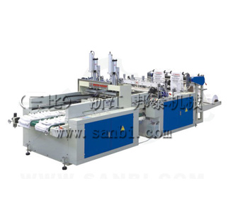 本機以HDPE、LDPE筒膜為原料可生產印刷、本色、背心袋,采用PLC控制、雙伺服(步進)馬達定長、液晶觸摸屏實時顯示,從送料、封底、 切斷、沖口、輸送一次性完成,自動化程度高,經濟效益好。