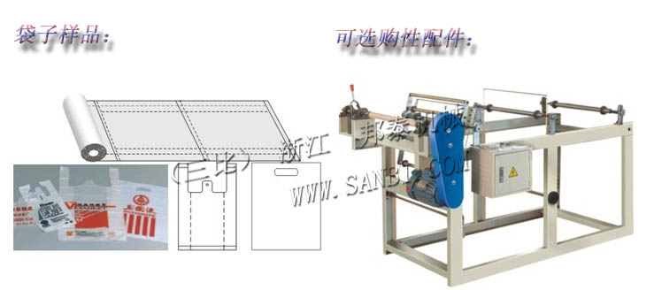 制有印刷的背心袋、平口袋;主電機采用變頻電機,使您更省電,調速更自如。良好性能的色標跟蹤儀,使封切長度更準確,誤差更小。采用先進的電腦,長度調整方便,精確。